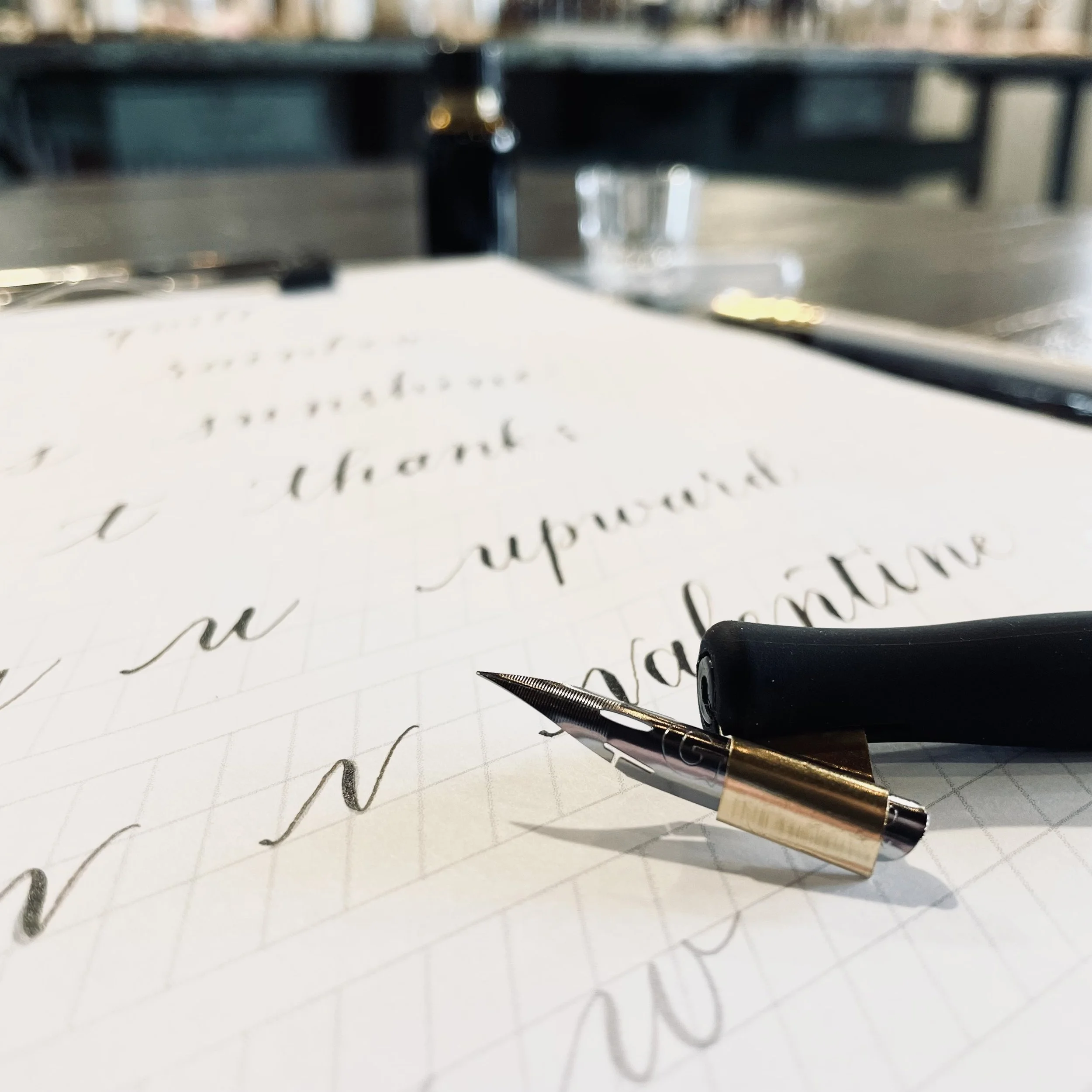 Try it first and if you want to continue your calligraphy journey at home, you can purchase your pen and ink for $10+tax following class.